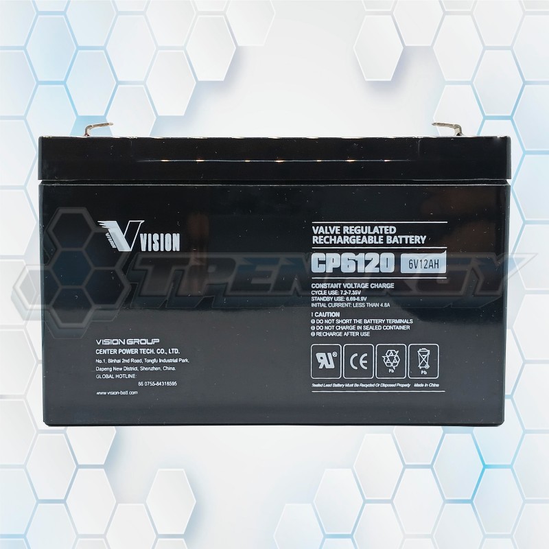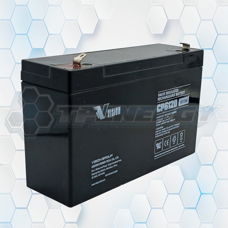 La Vision CP6120 es una batería recargable sellada tipo VRLA (Valve Regulated Lead Acid) con tecnología AGM, diseñada para aplicaciones como alarmas, juguetes eléctricos, luces de emergencia, UPS, equipos médicos y sistemas de respaldo energético. Su diseño compacto y libre de mantenimiento permite una operación segura en cualquier orientación.