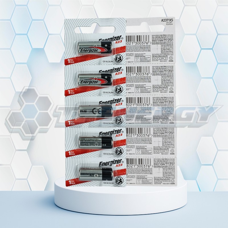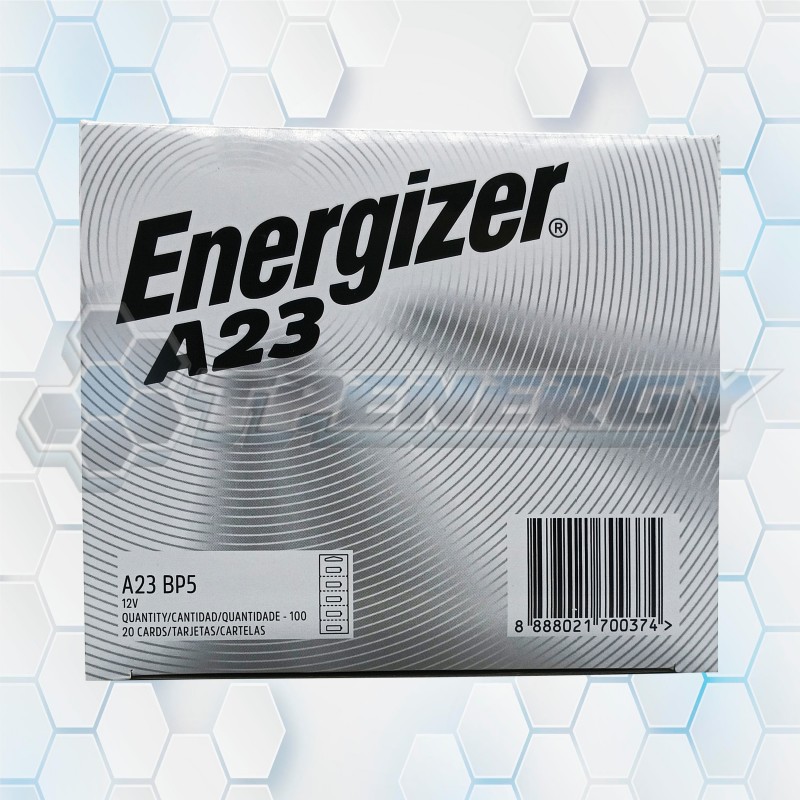 La Energizer A23 es una pila alcalina tipo miniatura, diseñada para aplicaciones electrónicas que requieren pulsos de alta potencia. Este blister incluye 5 unidades originales, ideales para controles remotos, alarmas y dispositivos inalámbricos.