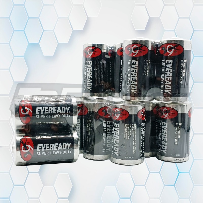 El bulto Eveready 1250T2‑6 está diseñado para distribuidores y comercios que requieren abastecimiento en gran escala. Esta presentación incluye 24 blisters (Pack) D12, cada uno con 12 pilas tamaño D (1.5V, carbón‑zinc), totalizando 288 unidades listas para la venta minorista.