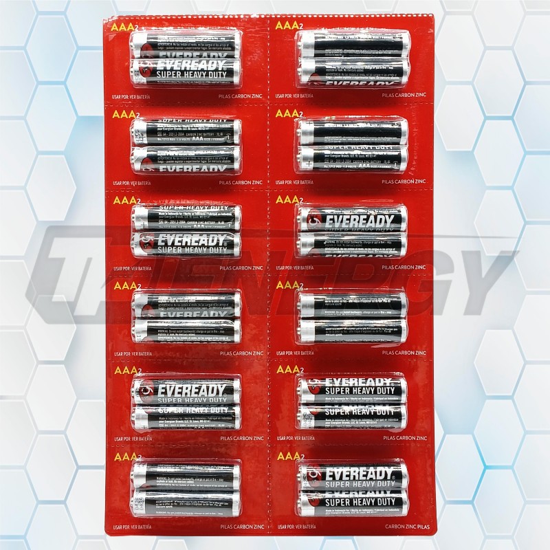 as Eveready AA 1.5V Carbon‑Zinc pertenecen a la línea Super Heavy Duty, una solución económica diseñada para dispositivos de bajo consumo como controles remotos, juguetes, radios portátiles y linternas. Su tecnología zinc‑carbon sin mercurio proporciona un desempeño estable y seguro, sumado al sello característico de resistencia a fugas que certifica la confiabilidad de Eveready.
