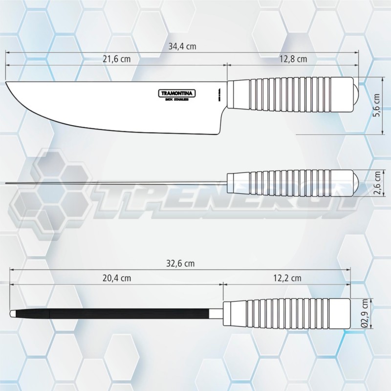 Cuchillo: 34,4 cm (hoja 21,6 cm)