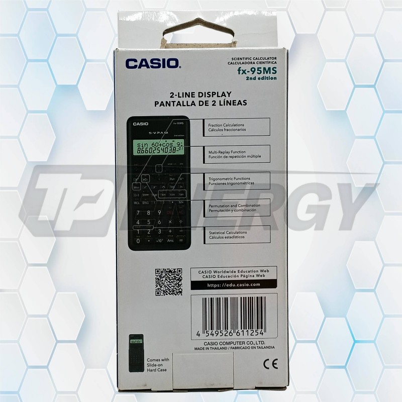 La Casio FX‑95MS Segunda Edición es una calculadora científica diseñada para ofrecer precisión, velocidad y una excelente visualización en cálculos complejos. Su sistema S‑V.P.A.M. permite introducir expresiones matemáticas de forma natural y revisar operaciones previas gracias a su pantalla de doble línea, facilitando la verificación y edición de resultados.