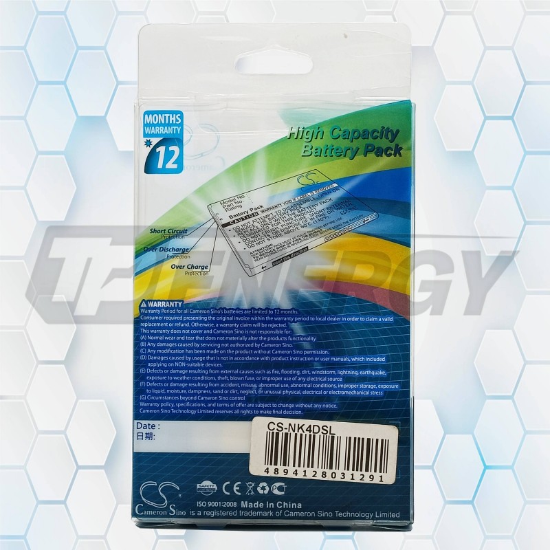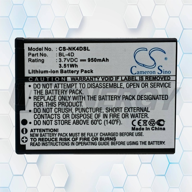La batería de alta capacidad Cameron Sino CS‑NK4DSL es un repuesto profesional diseñado para ofrecer un rendimiento estable en dispositivos compatibles con el modelo BL‑4D. Fabricada con celdas de ion‑litio de alta calidad, proporciona una capacidad de 950 mAh que asegura autonomía adecuada para usos cotidianos y aplicaciones de comunicación intensiva.