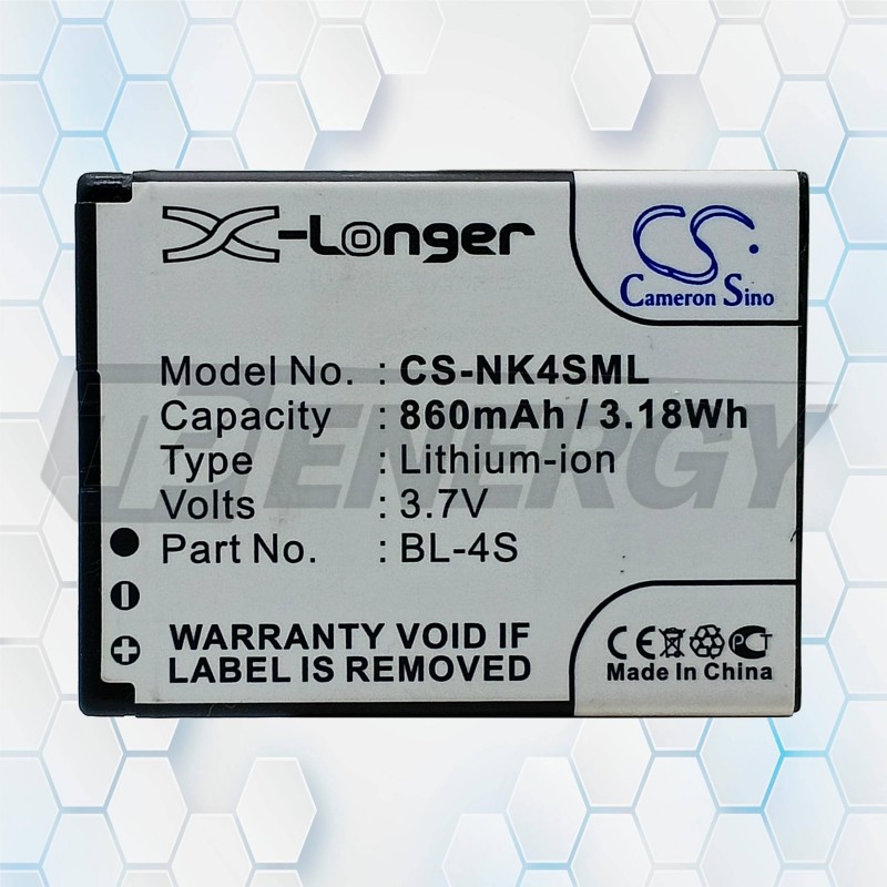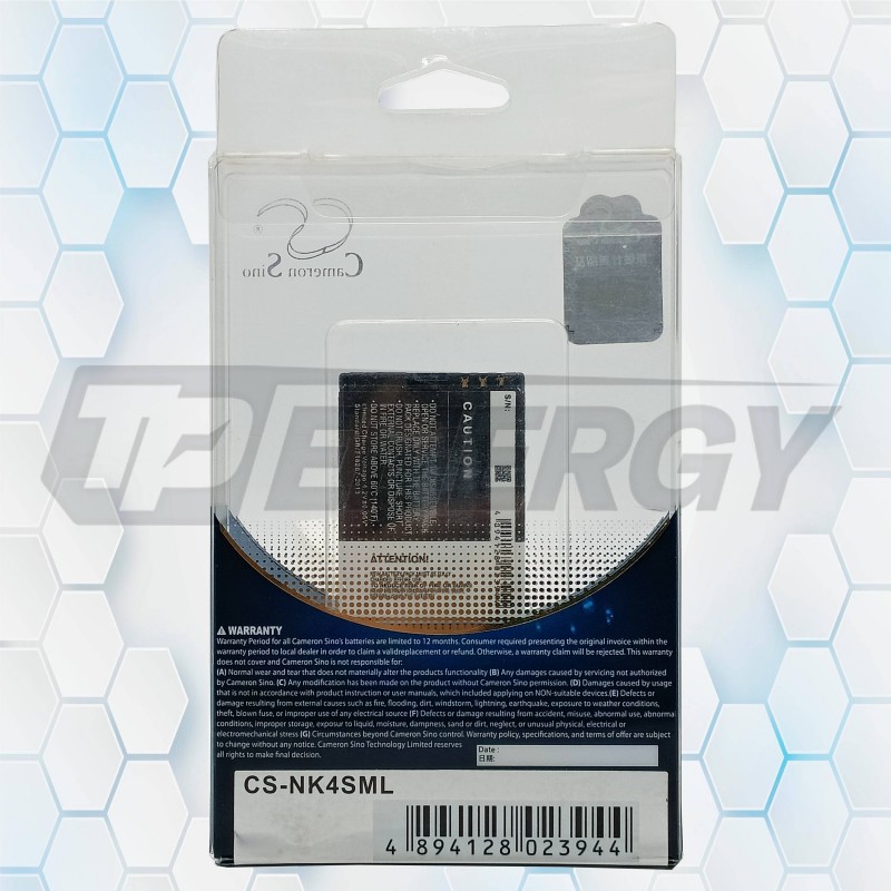 La batería Cameron Sino CS‑NK4SML ofrece 860 mAh y 3.7 V, reemplazando de forma segura y confiable el modelo BL‑4S. Su construcción en ion‑litio garantiza un rendimiento estable, buena autonomía y protección interna contra sobrecarga, descarga excesiva y cortocircuito.