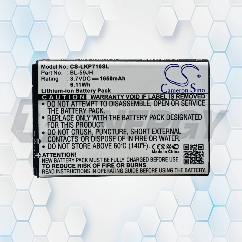 La batería de alta capacidad Cameron Sino CS‑LKP710SL es una solución profesional diseñada para dispositivos que utilizan la batería BL‑59JH. Con una capacidad real de 1650 mAh y un voltaje nominal de 3.7 V, proporciona un rendimiento superior frente a baterías estándar, asegurando autonomía prolongada para el uso diario: llamadas, aplicaciones, mensajería y navegación.