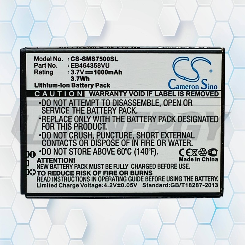 La batería Cameron Sino CS‑SMS7500SL es un repuesto de alta calidad para equipos Samsung y AT&T compatibles. Ofrece 1000mAh reales, tecnología Li‑Ion de 3.7V y protección contra sobrecarga y cortocircuito. Su fabricación certificada y sello holográfico de autenticidad garantizan un rendimiento estable y seguro.