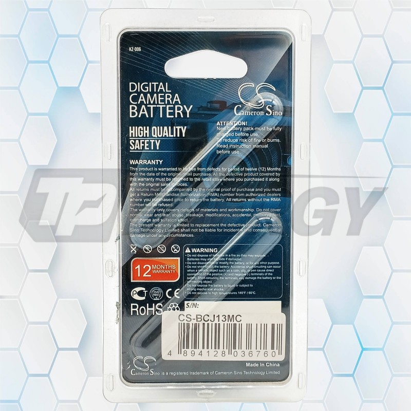 La batería recargable Cameron Sino CS‑BCJ13MC ofrece una capacidad de 850mAh y voltaje de 3.7V, proporcionando energía estable y segura para cámaras Panasonic Lumix y Leica compatibles. Su construcción Li‑Ion garantiza rendimiento confiable, mientras que su empaque incluye un sello de calidad Cameron Sino, asegurando autenticidad y protección avanzada.