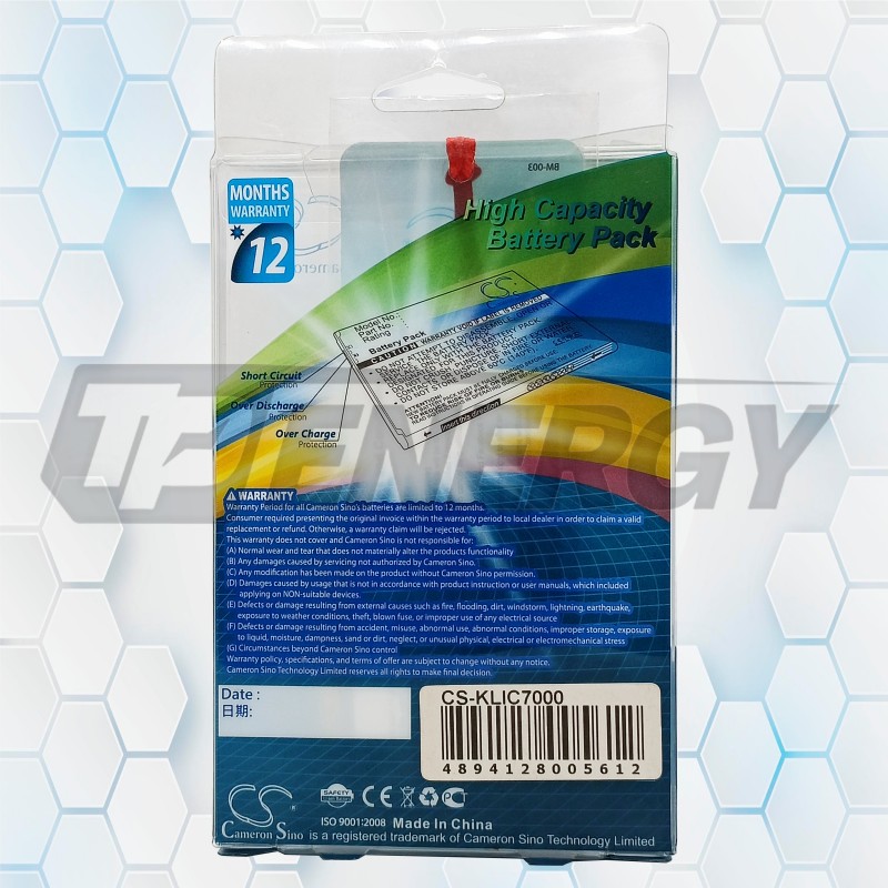 Batería Recargable De Alta Capacidad Cameron Sino CS-KLIC7000