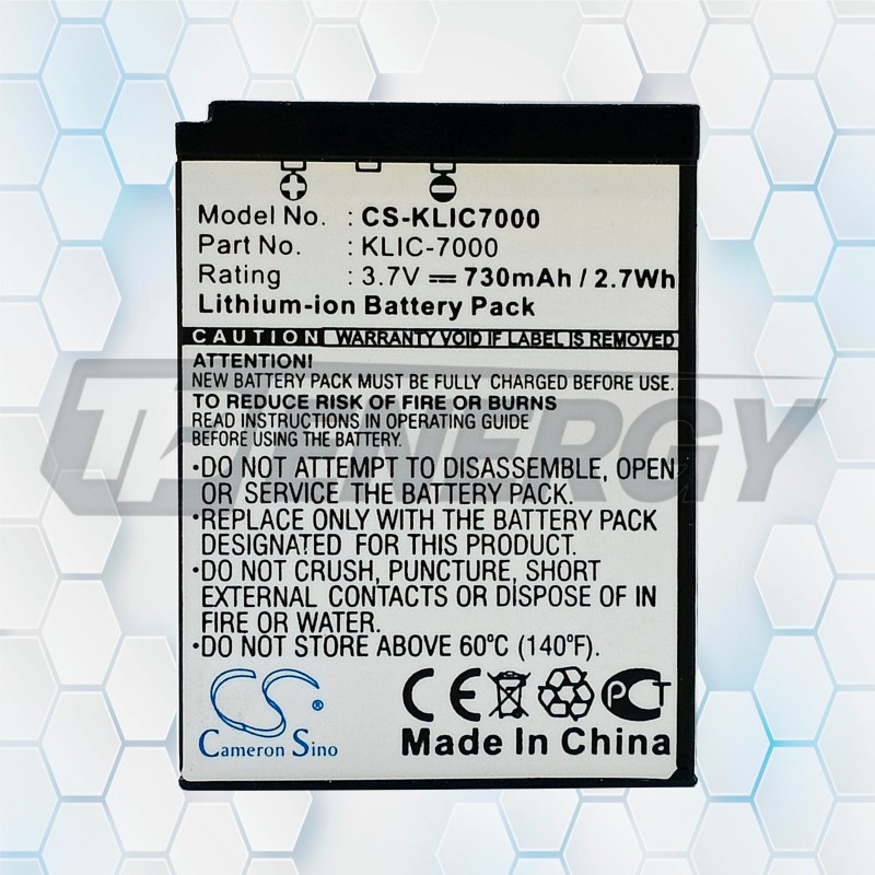 Batería Cameron Sino CS‑KLIC7000 ofrece 730 mAh reales y tecnología Li‑Ion para brindar energía estable y segura en cámaras Kodak compatibles con el modelo KLIC‑7000.