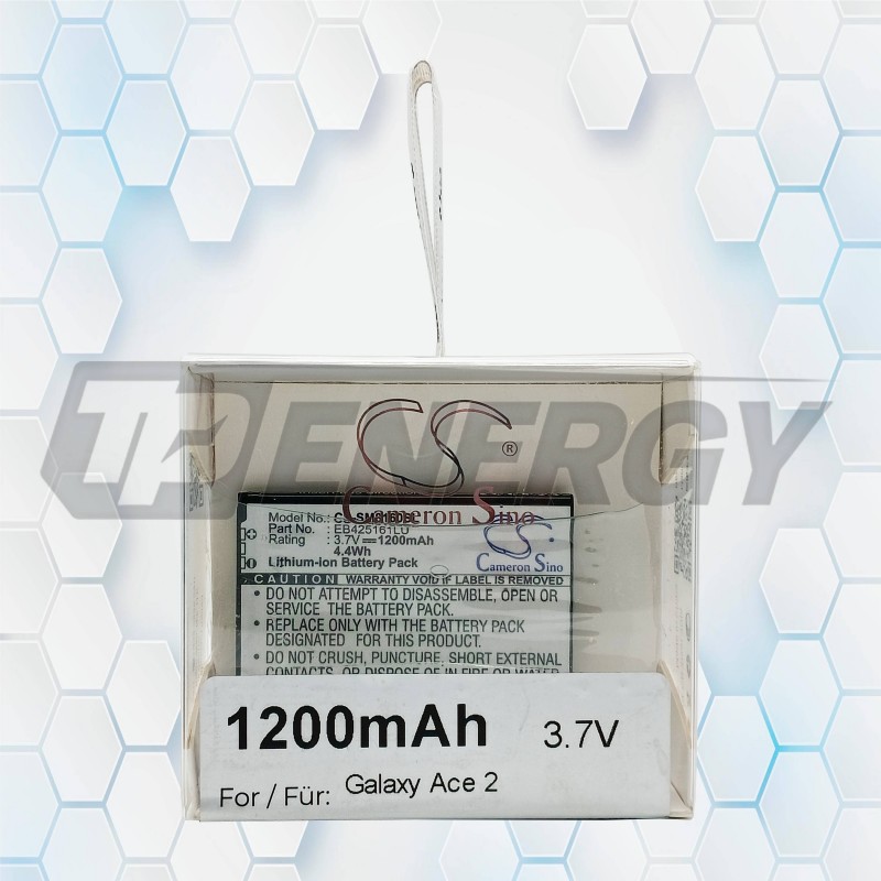Batería de ion‑litio Cameron Sino CS‑SM8160SL de 1200mAh y 3.7V, compatible con Samsung Galaxy Ace 2 y varios modelos adicionales. Ofrece excelente rendimiento, seguridad y larga duración.