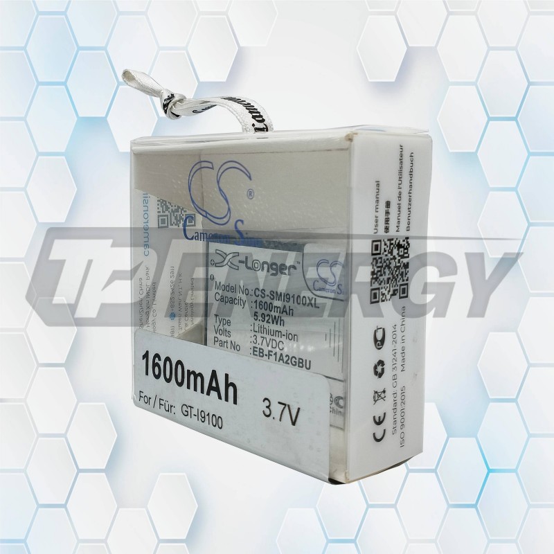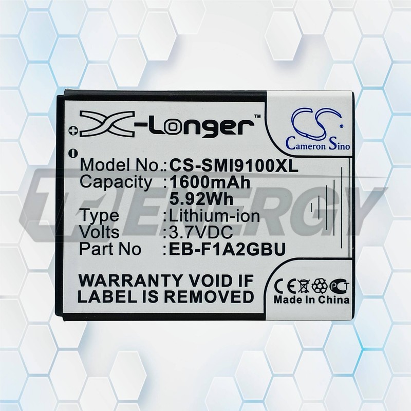 La batería recargable Cameron Sino CS‑SMI9100XL ofrece 1600mAh de capacidad y 3.7V, brindando un rendimiento confiable para una amplia gama de smartphones Samsung y variantes compatibles.