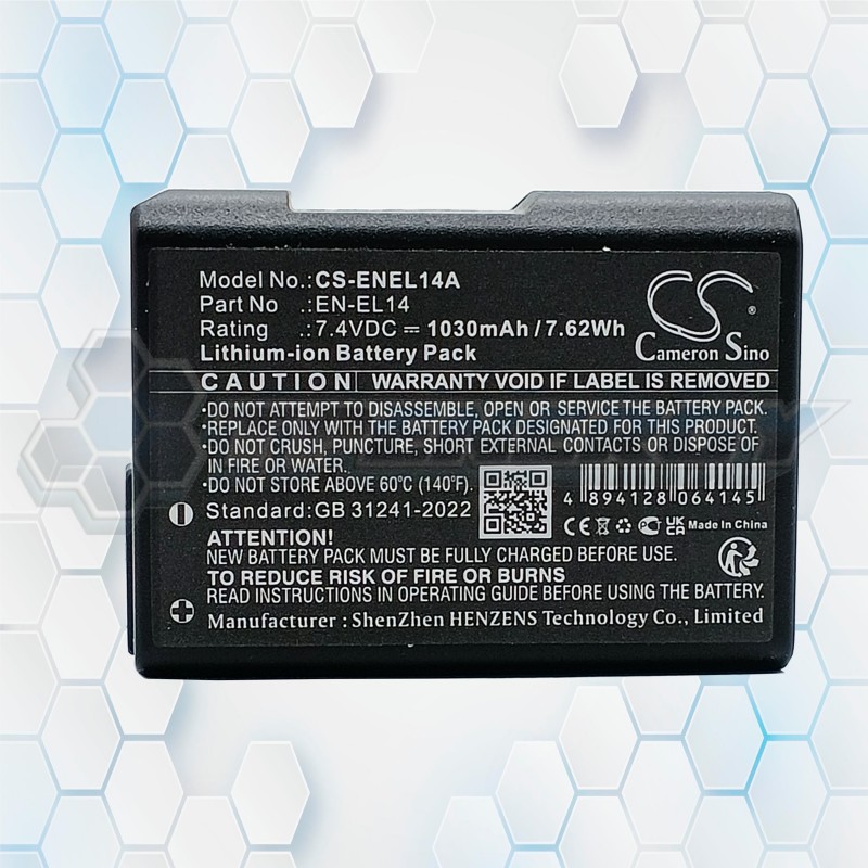 La batería Cameron Sino CS-ENEL14A es una excelente opción de reemplazo para cámaras Nikon que utilizan el modelo EN-EL14A. Con una capacidad de 1030 mAh y un voltaje de 7.4 V, esta batería de ion de litio proporciona energía estable y duradera para sesiones fotográficas prolongadas.