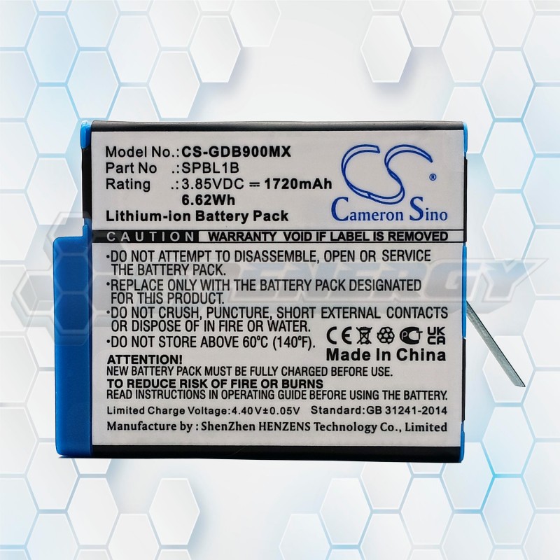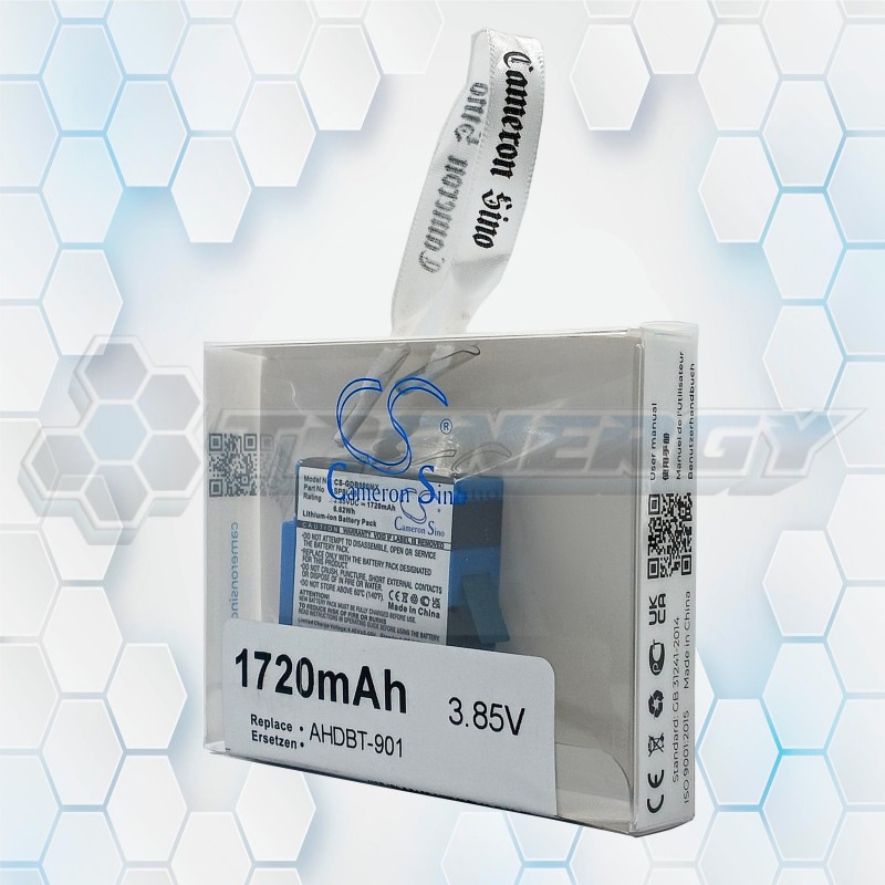La batería Cameron Sino CS-GDB900MX es una excelente opción de reemplazo para cámaras GoPro que utilizan el modelo AHDBT-901. Con una capacidad de 1720 mAh y un voltaje de 3.85 V, esta batería de ion de litio ofrece energía estable y duradera, ideal para grabaciones prolongadas en alta resolución.