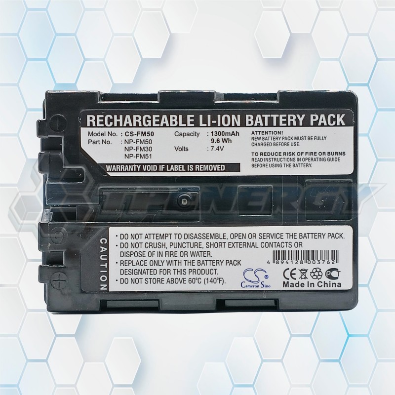 La batería Cameron Sino CS-FM50 es una excelente opción de reemplazo para videocámaras Sony que utilizan el modelo NP-FM50, incluyendo la Sony DCR-PC100. Con una capacidad de 1300 mAh y un voltaje de 7.4 V, esta batería de ion de litio proporciona energía estable y duradera para grabaciones prolongadas.