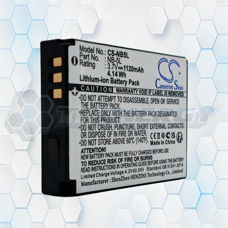 modelo NB-5L, como la IXY Digital 1000. Fabricada con tecnología de ion de litio, ofrece una capacidad de 1120mAh y un voltaje de 3.7V, brindando energía confiable y prolongada para sesiones fotográficas. Su diseño compacto y liviano la hace ideal para viajes y uso diario.