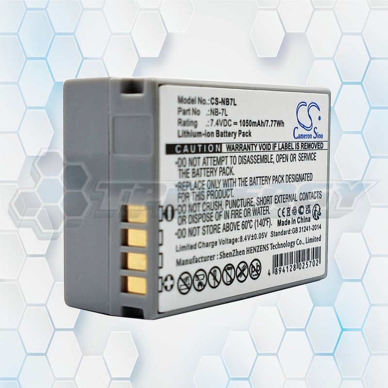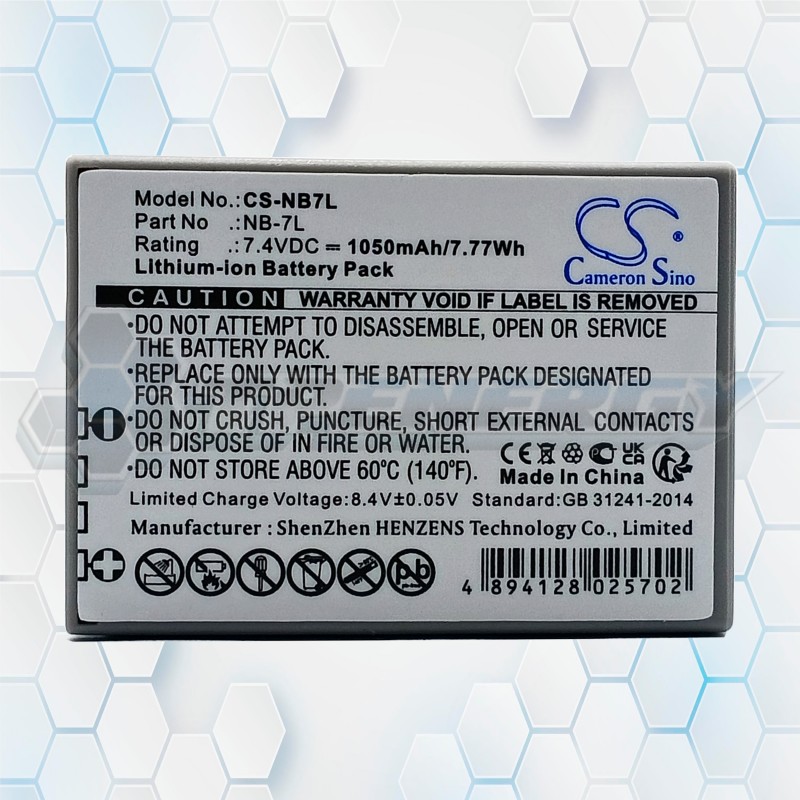 La batería Cameron Sino CS-NB7L es una alternativa confiable al modelo original Canon NB-7L, diseñada para cámaras PowerShot G12, G11 y G10. Con una capacidad de 1050mAh y un voltaje de 7.4V, ofrece energía estable y duradera para sesiones fotográficas intensas. Fabricada con tecnología de ion de litio, garantiza seguridad, eficiencia y larga vida útil.