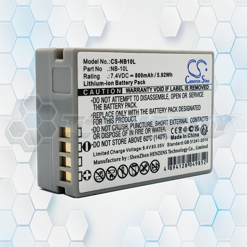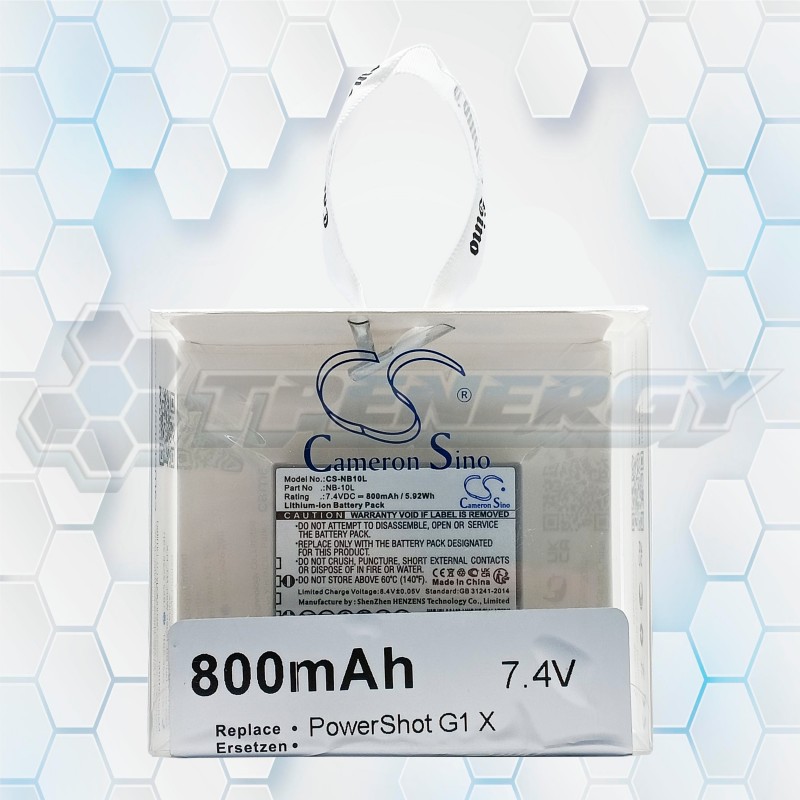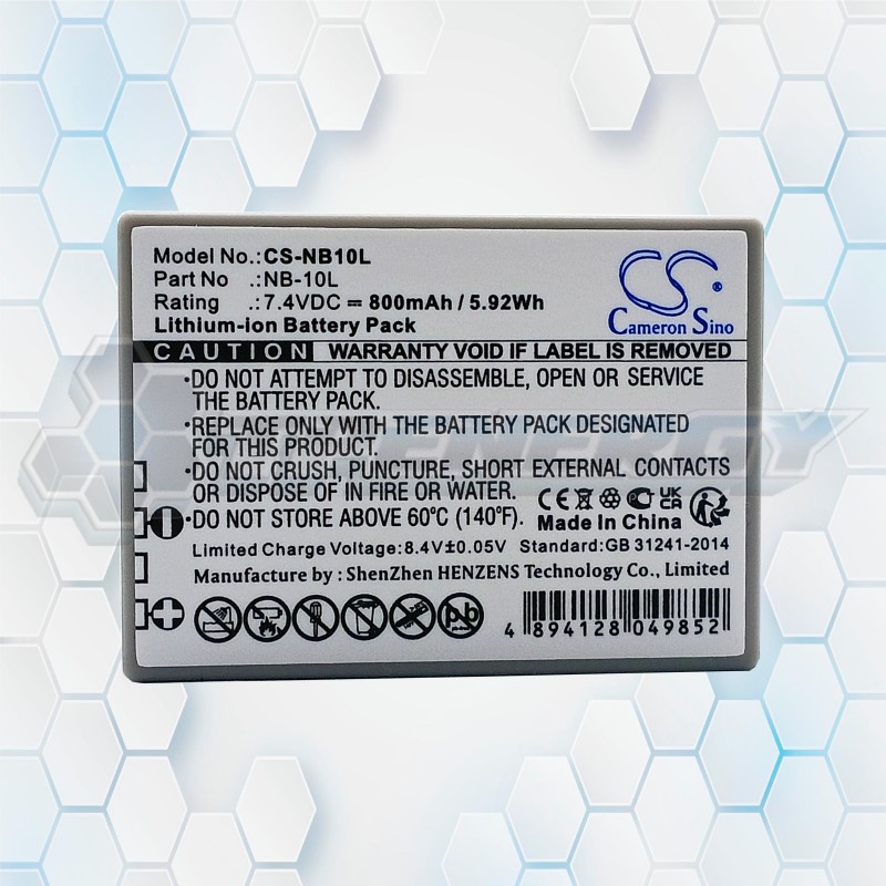 La batería Cameron Sino CS-NB10L es una excelente opción de reemplazo para cámaras Canon que utilizan el modelo NB-10L, como la PowerShot G1 X y SX40 HS. Fabricada con tecnología de ion de litio, ofrece una capacidad de 800mAh y un voltaje de 7.4V, brindando energía estable y confiable para sesiones fotográficas prolongadas.