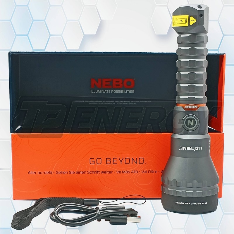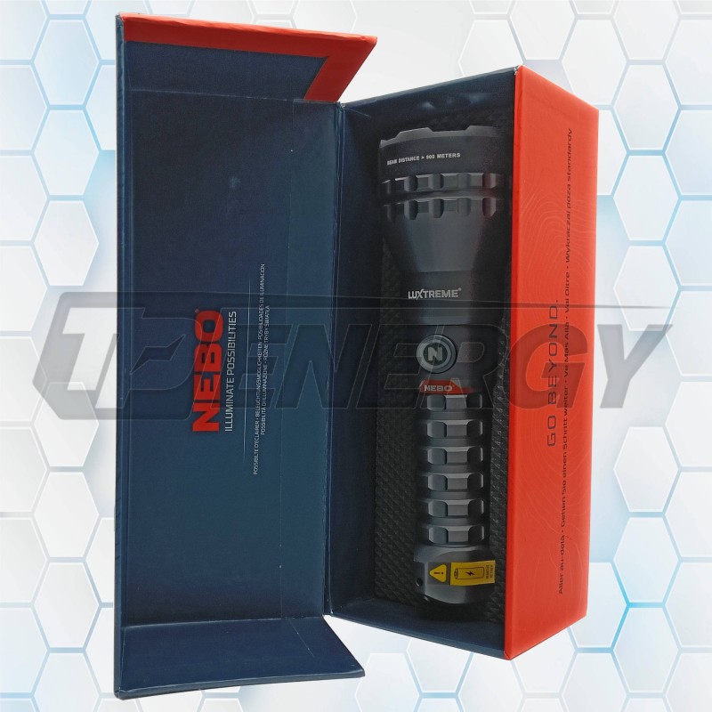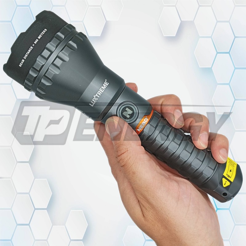 La NEBO LUXTREME redefine el rendimiento en iluminación portátil gracias a una ingeniería óptica de última generación que permite alcanzar más de medio kilómetro de distancia real. A diferencia de otras linternas que priorizan solo los lúmenes, la LUXTREME está optimizada para lanzar un haz concentrado de altísima intensidad: 202.500 candelas en modo alto, logrando iluminar hasta 900 metros.