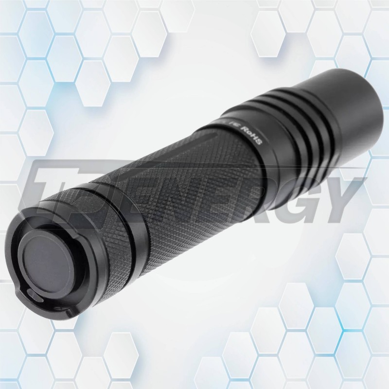 Su cuerpo está fabricado en aluminio grado aeronáutico con acabado anodizado tipo III, lo que garantiza alta resistencia al desgaste. Además, cuenta con protección contra polaridad inversa, regulación digital de brillo y resistencia al agua según estándar IPX-8.