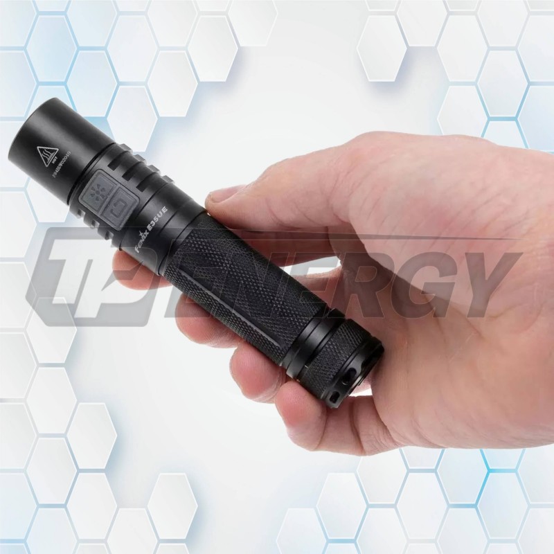 La FENIX E35 Ultimate Edition (E35UE) es una linterna compacta, robusta y sorprendentemente potente para su tamaño. Su LED CREE XM-L2 U2 alcanza un máximo de 1000 lúmenes, proporcionando un haz uniforme y preciso. Diseñada como herramienta de uso cotidiano, combina ergonomía, durabilidad y un sistema de doble interruptor que facilita el acceso rápido tanto a los niveles de potencia como a los modos especiales (estroboscópico y SOS).