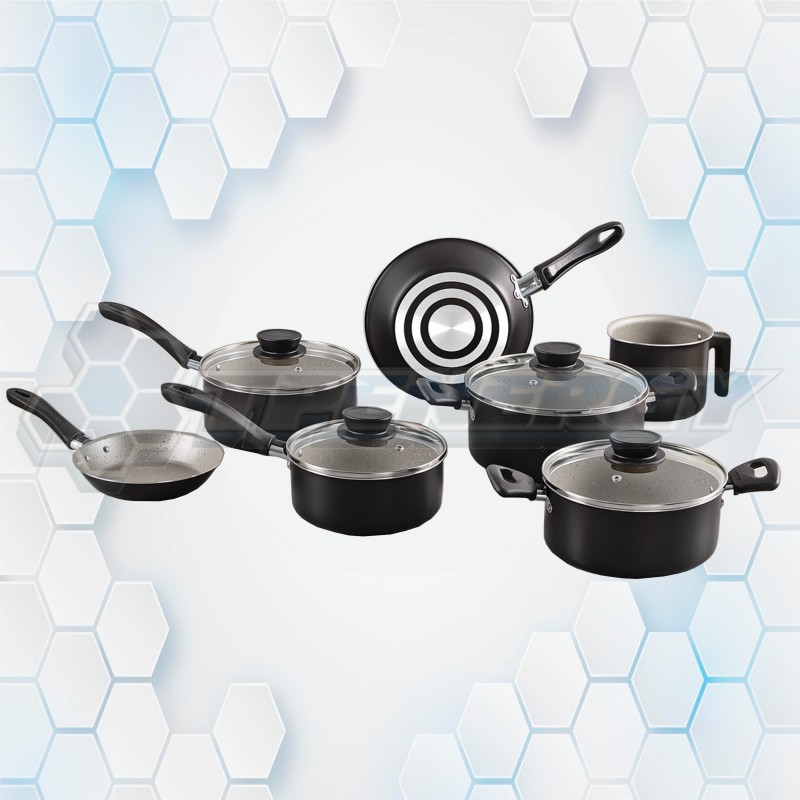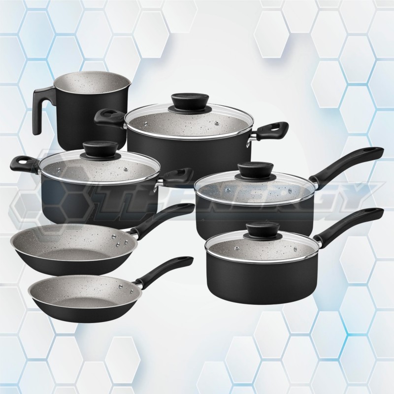 Incorpore practicidad y eficiencia en su cocina con la batería de cocina Tramontina Linz en aluminio con revestimiento interno y externo en antiadherente Starflon Max negro de 7 piezas. Cada pieza está fabricada en aluminio, asegura una cocción rápida y uniforme, y evita que los alimentos se peguen. Esto facilita la limpieza y proporciona una mayor durabilidad. Con tapas de vidrio templado con bordes de acero inoxidable, ofrece más visibilidad durante la preparación, mientras que los mangos y asas de baquelita antitérmica y los agarradores de nylon garantizan seguridad y comodidad en el uso. Las piezas son versátiles y compatibles con cocinas a gas, eléctricas y vitrocerámicas, además de ser aptas para lavavajillas. ¡Esto aporta toda la funcionalidad que la preparación de sus comidas y usted se merecen!