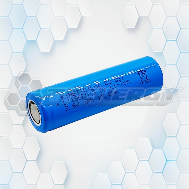Producto: Batería Recargable de Litio Modelo: LI18650 (3.35) Marca: Kinetic Tipo de batería: Li-ion (Iones de Litio) Voltaje nominal: 3.6 V Capacidad nominal: 3350 mAh (3.35 Ah) Energía almacenada: 10.8 Wh Formato: 18650 cilíndrica Dimensiones: