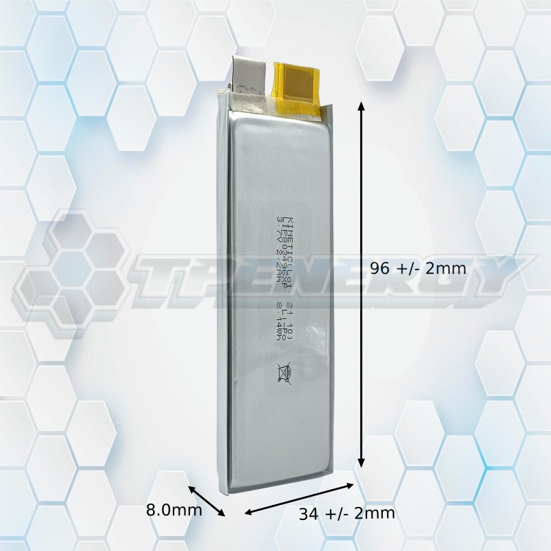 La Batería Celda De Li-Po LIP803496XP 3.7V Recargable Kinetic es una celda de polímero de litio de alta capacidad, diseñada para alimentar dispositivos electrónicos exigentes. Su formato plano y liviano permite integrarla fácilmente en proyectos portátiles, sistemas embebidos y dispositivos médicos.