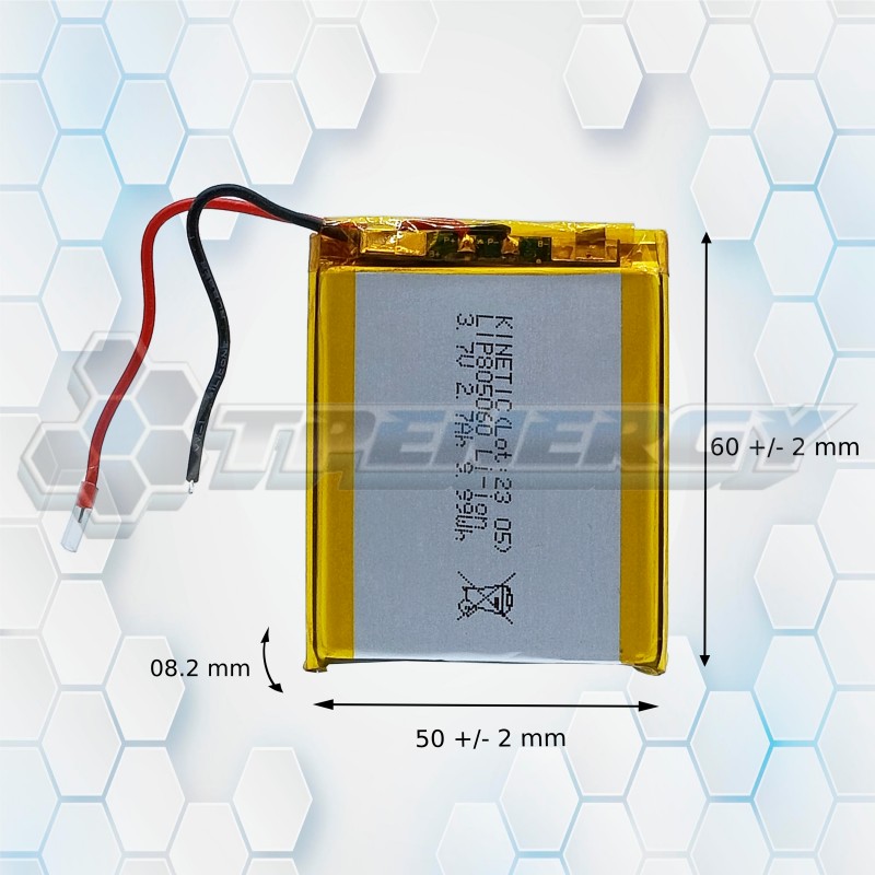 La celda de Litio Polímero Kinetic LIP805060 es una batería recargable de alto rendimiento, diseñada para alimentar dispositivos electrónicos que requieren gran autonomía y eficiencia energética. Con una capacidad de 2700mAh y una energía de 9.99Wh, esta celda es ideal para sistemas portátiles, sensores, módulos inalámbricos y desarrollos tecnológicos avanzados.