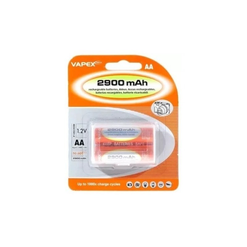 Pila recargable AA Vapex Ni-MH de 1.2 V y 2900 mAh en pack de 2 unidades. De alto rendimiento, reutilizables y con distintivo color naranja para fácil identificación.
