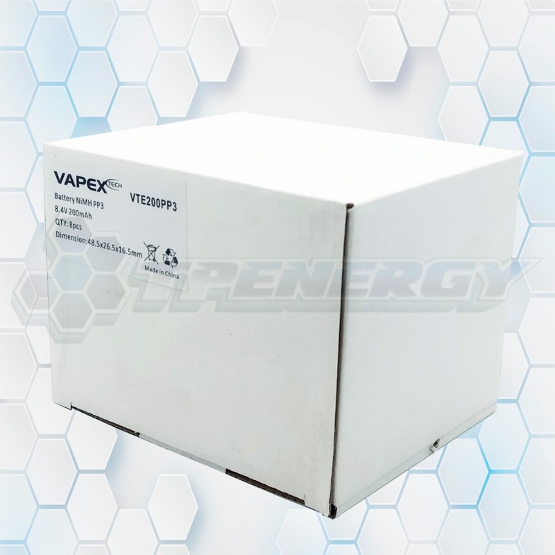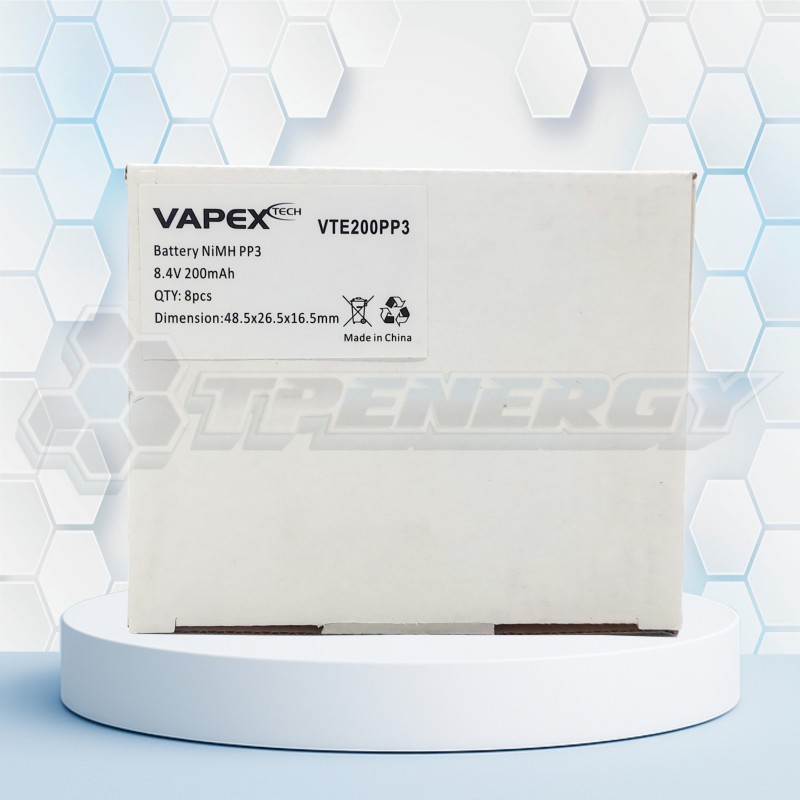 Energía confiable en formato compacto. La pila recargable Vapex Ni-MH de 9V y 200 mAh es ideal para dispositivos que requieren potencia constante y ecológica.