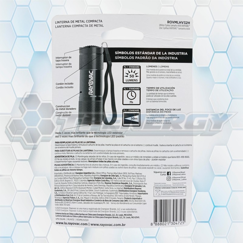 La Rayovac ROVMLHV32H es una linterna compacta de metal diseñada para brindar durabilidad y practicidad. Su cuerpo metálico resistente y tamaño reducido la hacen perfecta para llevar en bolsos, mochilas o guanteras. Con 50 lúmenes de potencia, es ideal para tareas cotidianas, cortes de luz o actividades al aire libre.