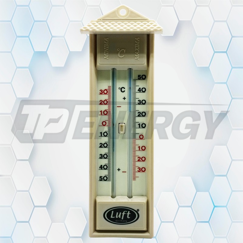 Termómetro analógico Luft TMA900 de máxima y mínima, ideal para controlar variaciones de temperatura en interiores y exteriores. Diseño clásico y lectura clara.
