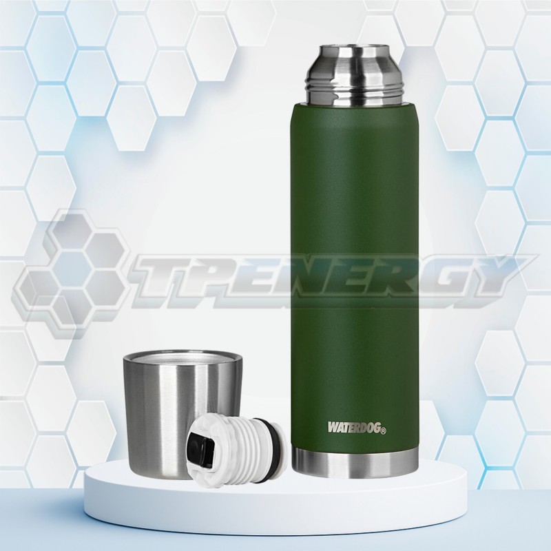 Termo Waterdog OBUS1000 de 1 litro con doble pared de acero inoxidable. Conserva bebidas calientes y frías por horas. Ideal para uso diario.